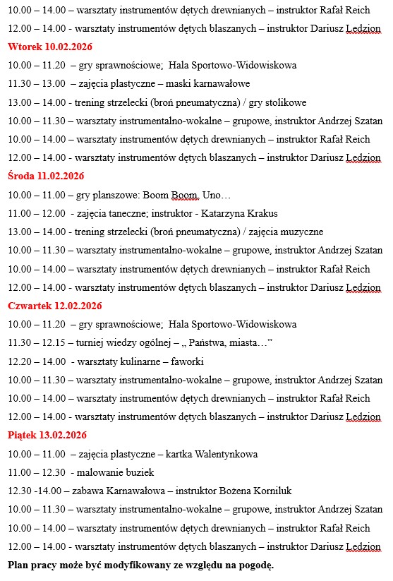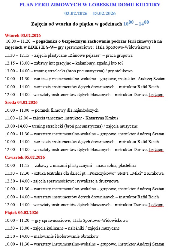 Plan ferii zimowych w ŁDK 2026